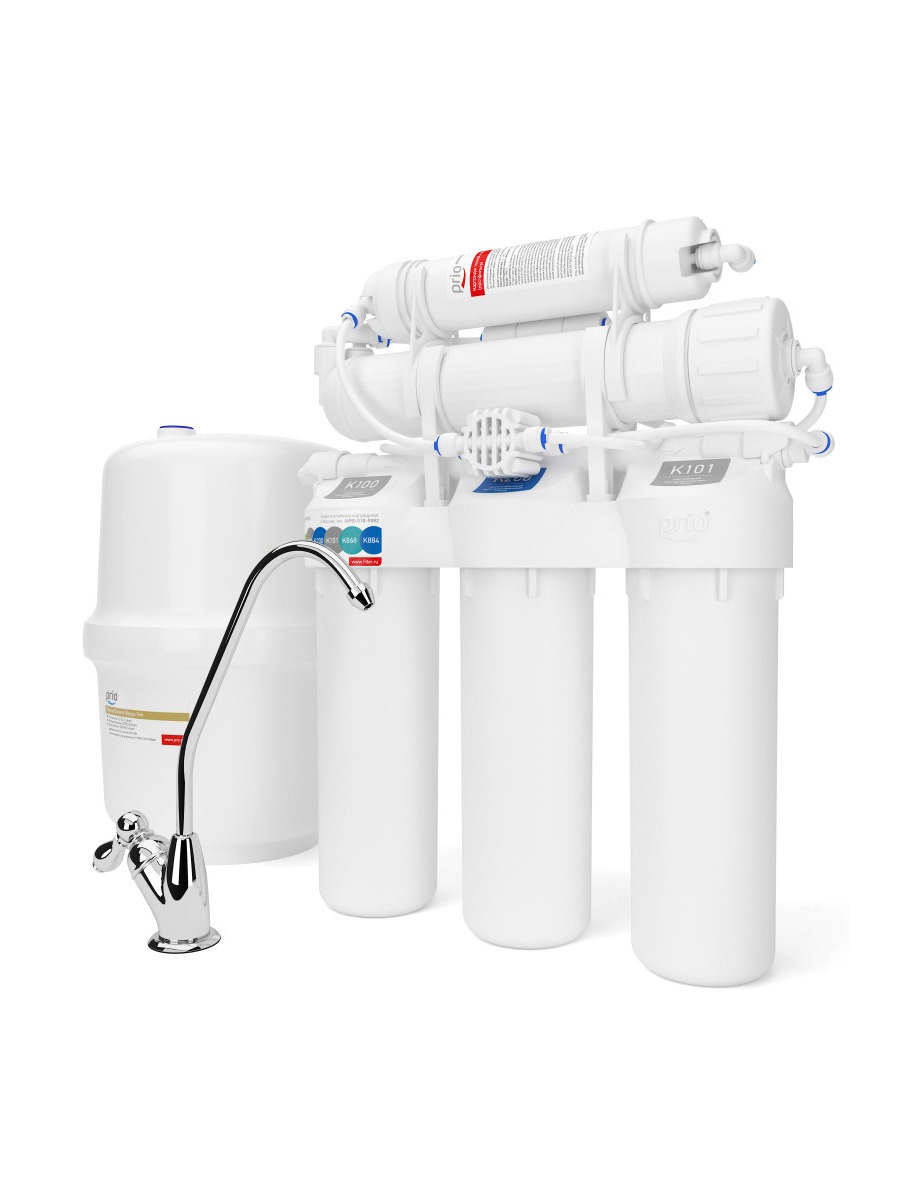 Стандартный фильтр обратного осмоса, состоящий из пяти ступеней очистки, оснащенный мембраной типоразмера 1812, размещенным в отдельном блоке.