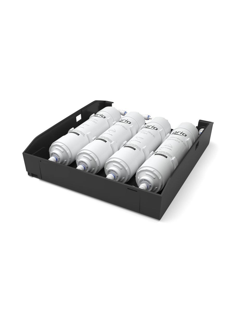 - Оборудована четырьмя фильтрующими картриджами: механически-сорбционным. умягчающим. сорбционным и ультрафильтрационным.